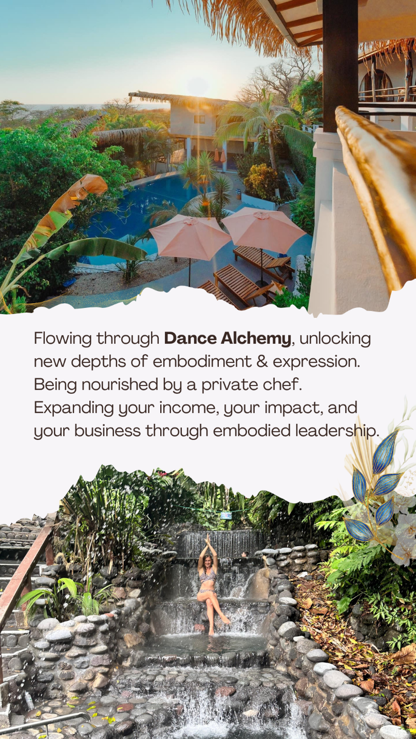 This retreat combines Dance Alchemy™ movement, somatic and intuitive healing, facilitator training, business & abundance expansion, and deep sisterhood connection in a breathtaking Costa Rican paradise.